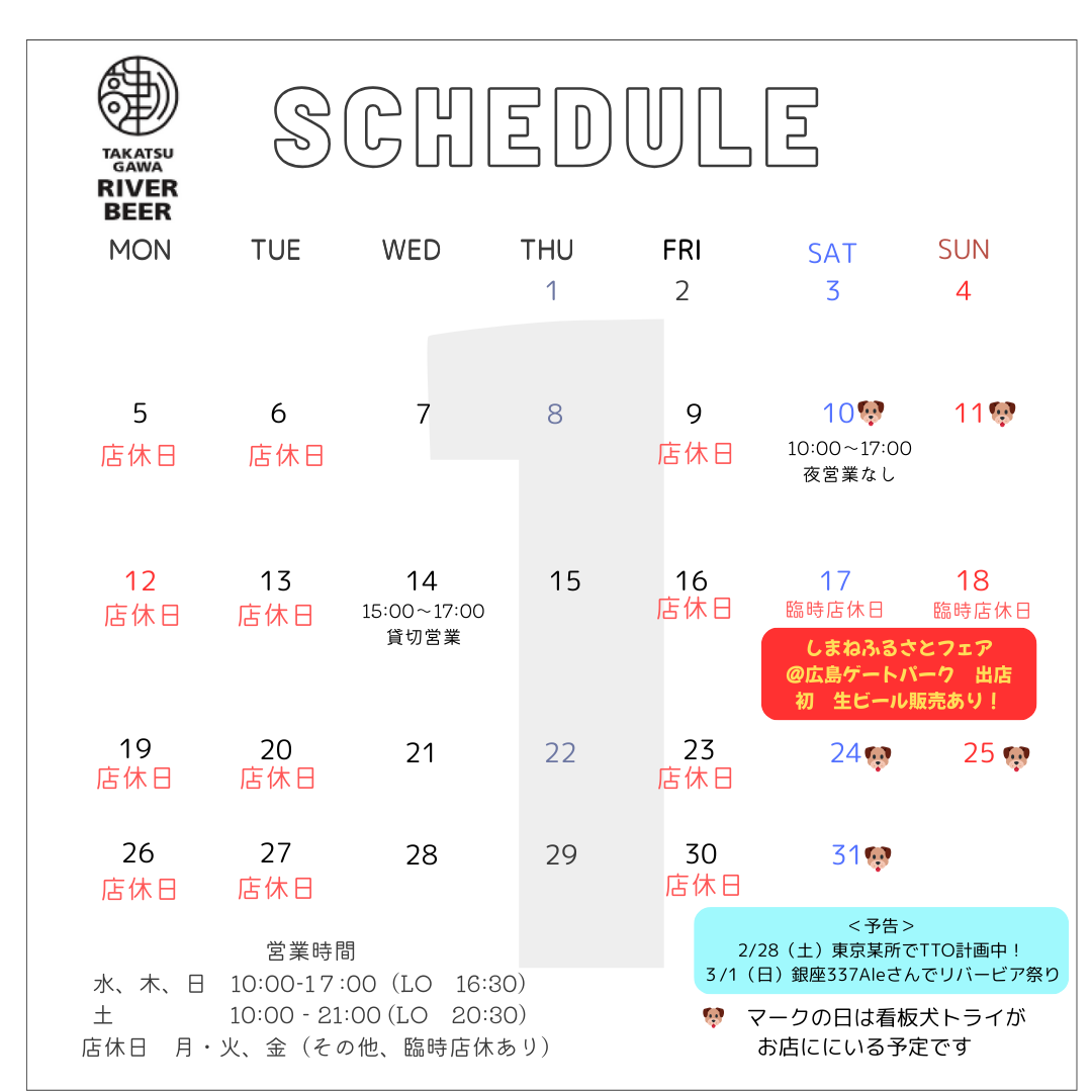 2026年1月のクラフト酒場高角の営業予定です。